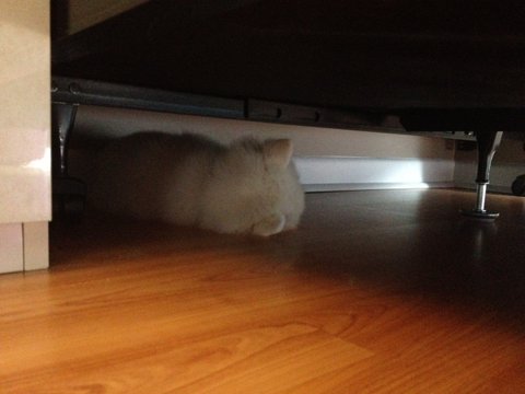 한참 뛰어놀다가 어슬렁어슬렁 침대밑으로 가서 저러고 자요 ㅋㅋㅋ