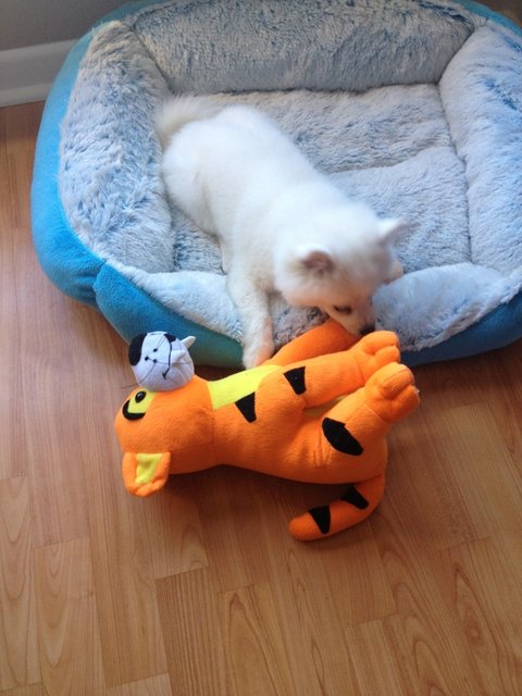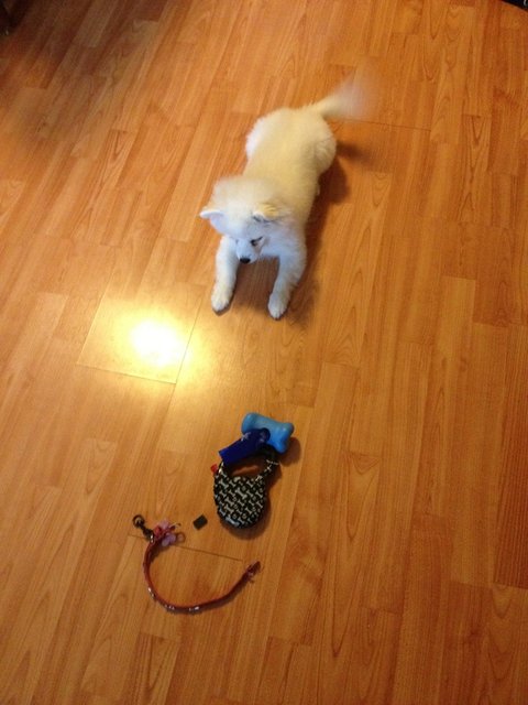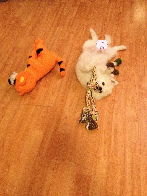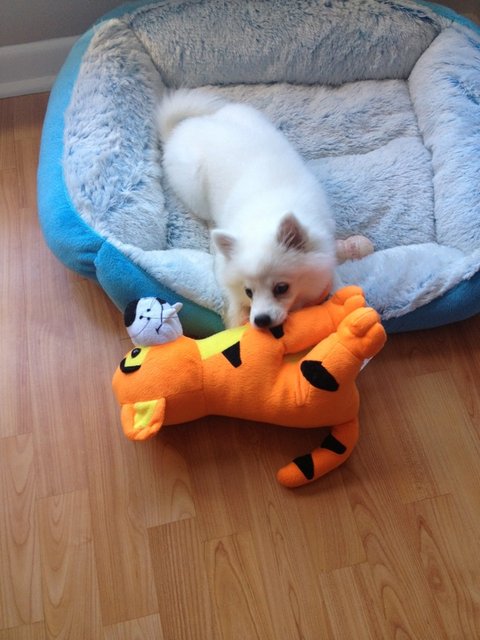털...엄청 많이 빠집니다. 그루밍 계속 해주셔야 해요..안그러면..후... 서랍에 테잎은 필수입니다! ㅋㅋ 1편에서 말씀드렸다시피 아메리칸 에스키모는 Toy,Miniature, Standard가 있는데요 샤벳은 Miniature라서 10–17 lbs정도 커요.