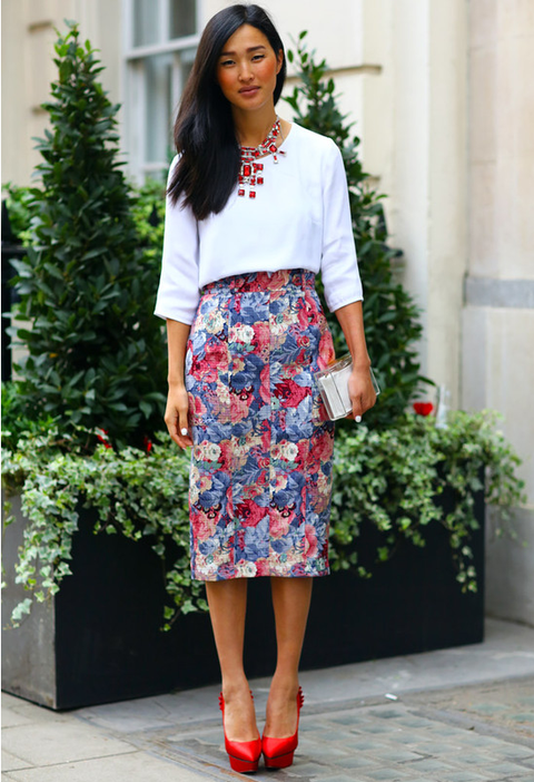 직장인들의 프로패셔널함을 돋보이게 하는 룩으로 가장 적합한 길이의 스커트이다