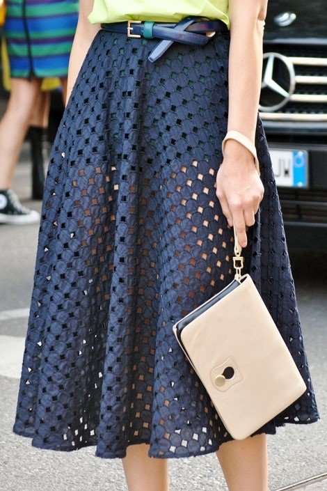 길이감이 무릎아래까지 내려오는 미디스커트는 우아하고 단아한 느낌을 줄 수 있다