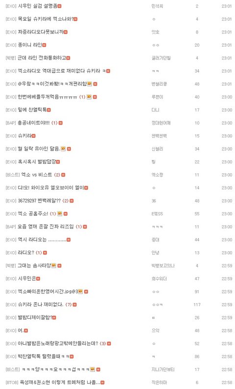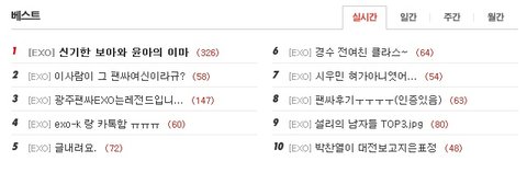 베스트는 걍 다 엑소글이고 목록보면 거의다가 엑소임ㅋㅋ