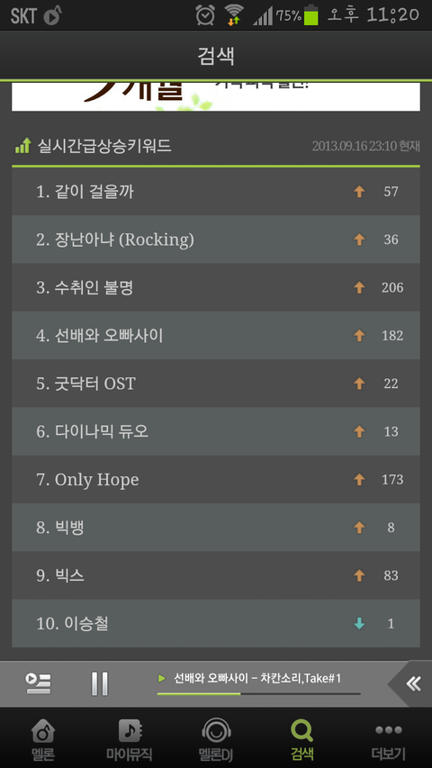 선배와 오빠사이... 멜론 검색하러들어갔는데 순위에 뙇!!!!!