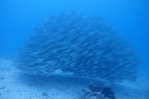 이게 작아보이지만 사실은 어른 팔뚝보다 큰 물고기들입니다. 하늘을 가릴려고 하네요, 잭피쉬때 입니다.^^