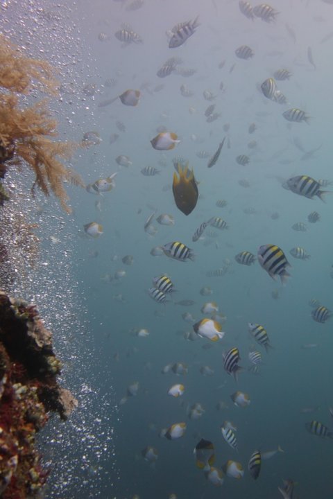 제가 무척 좋아하는 강한 조류 입니다^^ 공기방울 뒤로 날라가는거 보이시나요? 이런 빠른 물살 너무좋아요^^
