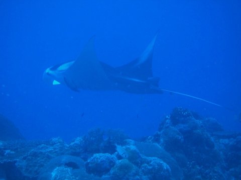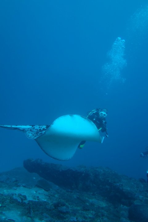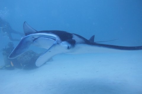 이 UFO 처럼 날아다니고 있는 녀석은 마블레이 입니다. 등에 달마시안처럼 검은 점밖이가 보이죠? 레이 종류중 다소 보기 힘든 종류라고 하네요.