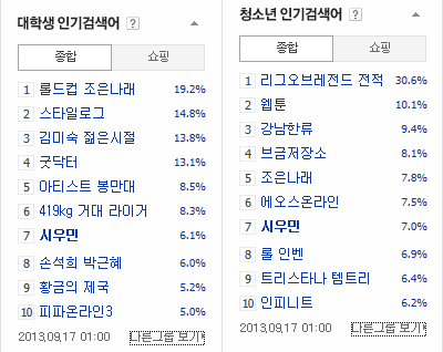 지금 새벽인데 초록창 검색어 청소년 , 대학생에 상위권에 올라와있고요...