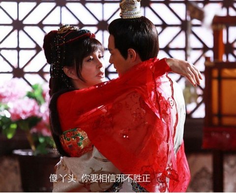 사진 속에서, 류샤오칭이 맡은 당태종 이세민(李世民)의 명(明)비는 16살의 소녀로 당태종을 연기하는 남자 연기자는 류샤오칭보다 21살이 적은 정위린(鄭玉霖)이며 두 사람이 얘기 나누는 모습이 무척 다정해 보인다.