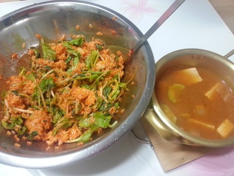 배추싹? 비빔밥과 된장찌개