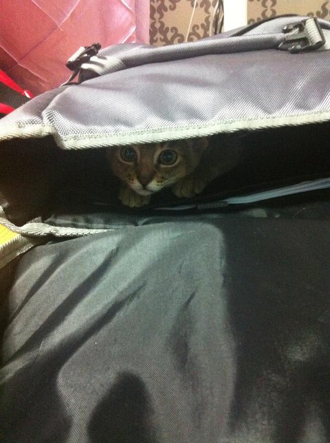 남편 가방에 쏙 들어가있는 사랑스런 사랑이 파안