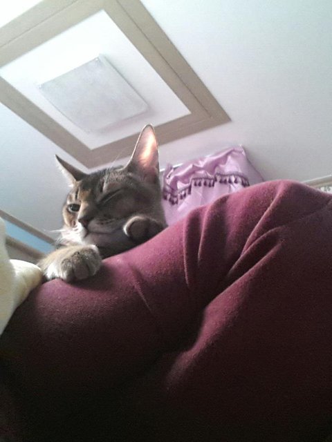 이 사진은 남편이 찍은건데 남편이 쿨쿨 잠자다 눈을뜨니 사랑이가 배위로  올라와