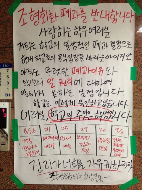이러한 사태를 부디 모든 곳에서 알아주시고 더 이상의 비인기학과와 순수학문계열, 예체능 계열의 폐과를 자행하는 학교가 없도록.. 순수하게 공부하고 싶고 그림 그리고 싶은 학생들에게 상처되는 일이 없었으면 좋겠습니다.
