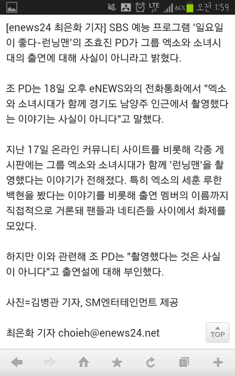 엑소 런닝맨 출연 안 한다고 기사뜸...