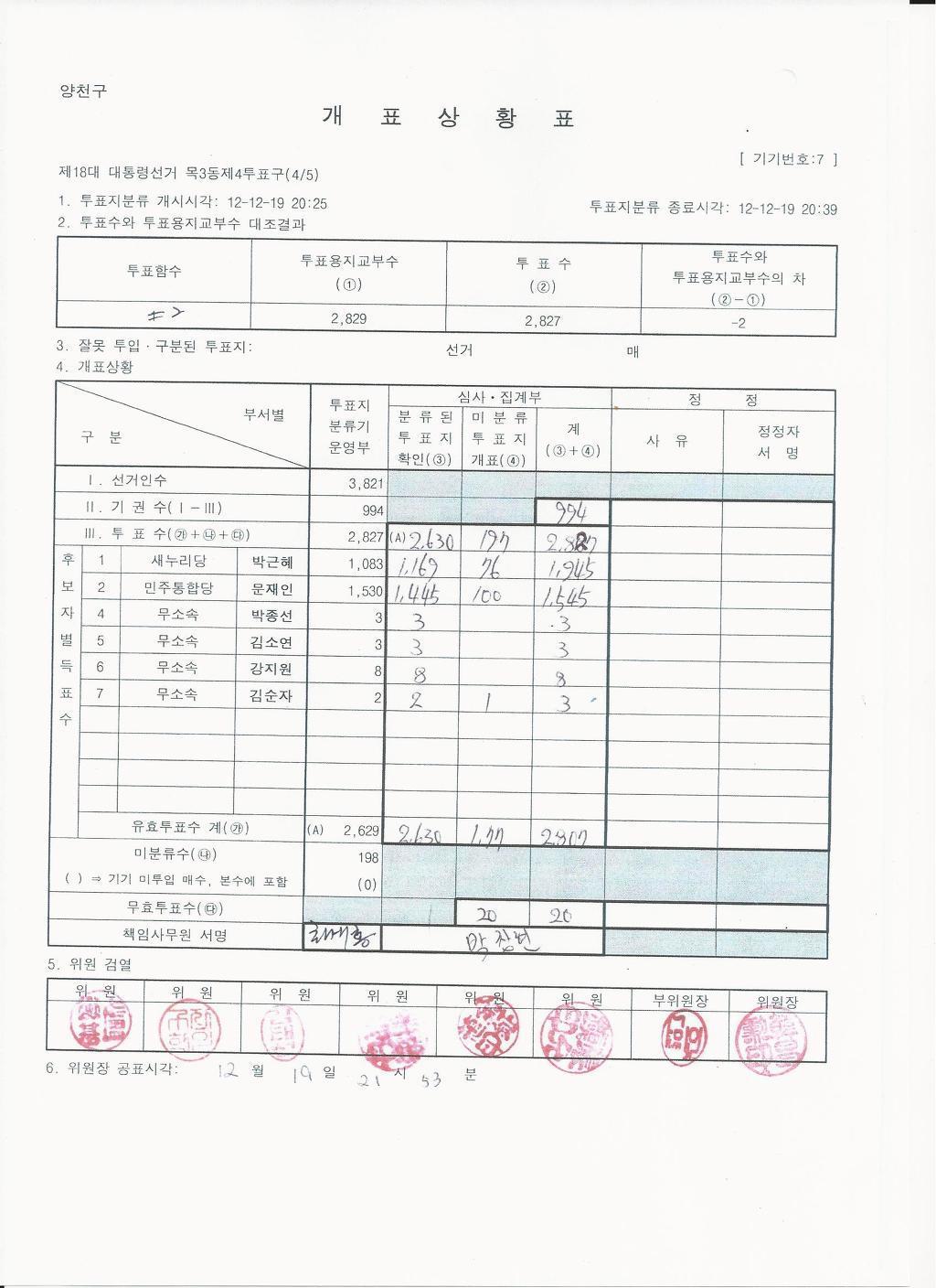 미분류표가 비정상적인 기울기로 박근혜 후보에게 유리한 기울기로 분류되었다.