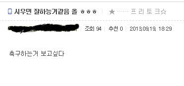 그래서 평소 자주 방문하던 축구 커뮤니티에 '시우민'을 검색해보니