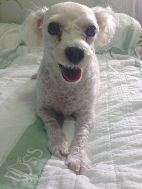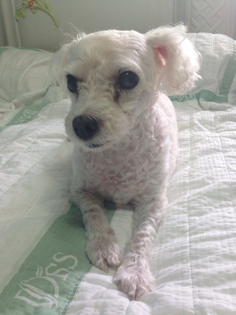 토이푸들종에 흰색이고, 나이가 많아 백내장때문에 눈이 하얗게된상태입니다.. 잘 보이지도 않구요