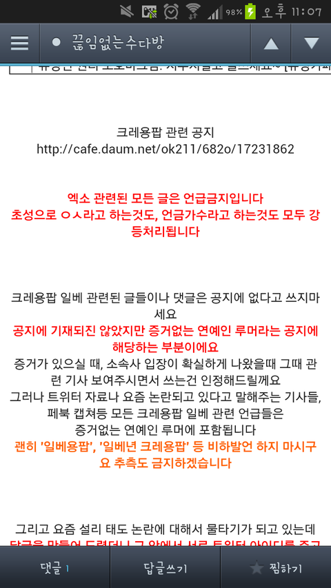 거기 공지에 엑소언급하면 강등이라고 적혀있더랔ㅋ