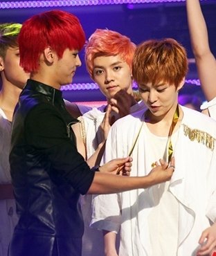둘사이에서 시우민에게 절친 소유욕을 드러내는 루한 표정..ㅋㅋ 긴장X100