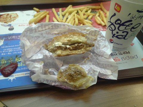 그때부터 조금 짜증이 났지만 불고기 버거로 바까와서 먹는 중이었음.