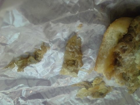 이상한걸 느끼고 빵을 들춰 보니 시커먼 양배추가 나왔음. 그게 이 사진임.