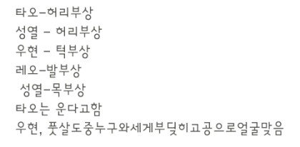 부상당한애들 큰부상아니라고해놓고 전치8주랑깁스.