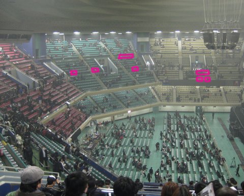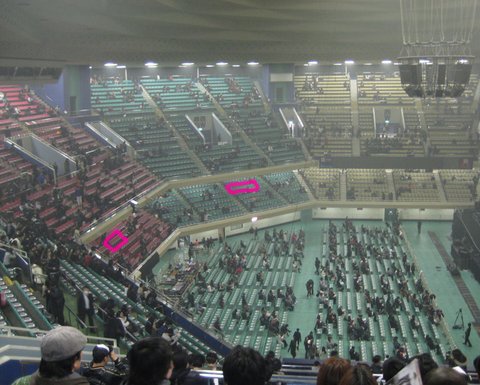 26일 공연은 아마 2층 스탠드 전체를 봉쇄 (검은 천).