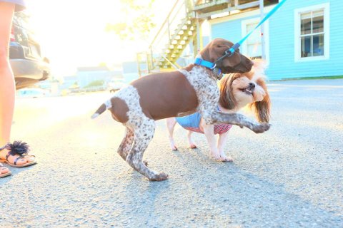무서운 얼굴로 제압당한 상대견의 모습: 급 놀라고 눈치보며 뒷걸음질 친다