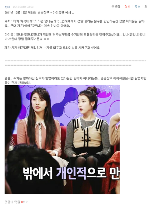 수지팬들은 수지가 아이유랑 놀길원함..