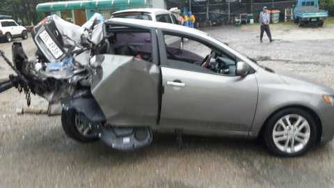 우리차 뒤를 꽝 박아서 차는.박살