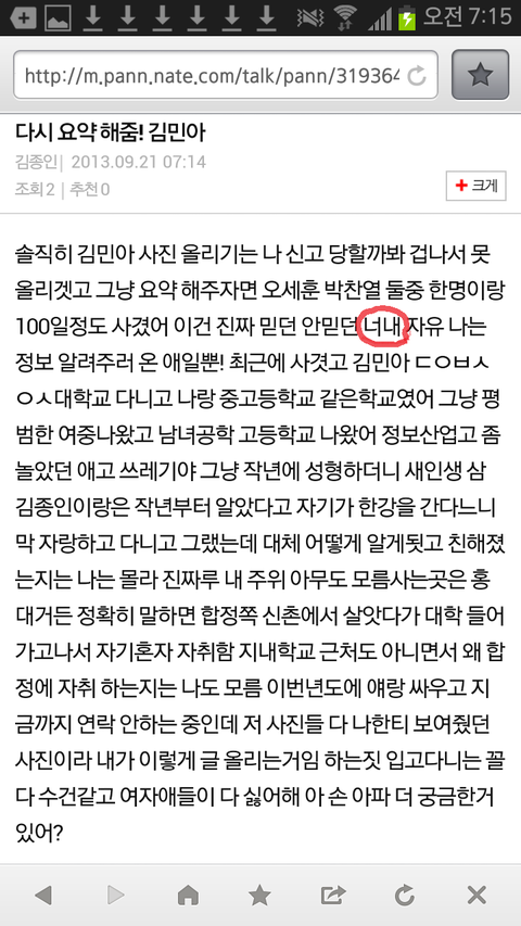 말투가 조카 비슷함ㅋㅋㅋ맞춤법 틀린거 보여???저것도 똑같음ㅋㅋㅋㅋㅋ내가 이런거에 예민해서 그런가 암튼 의심이 가네욤~_~