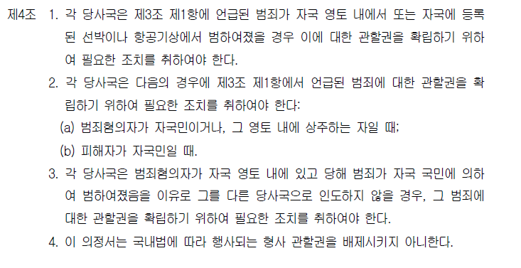 결국 4조 2항은 아동 매매/매춘/포르노 범죄자가 한국에 있는 한국인이든, 한국에 있는 외국인이든, 외국에 있는 한국인이든 그들을 실질적으로 규제하고 단속할 수 있는 법적 조치를 취하라는 말이다.