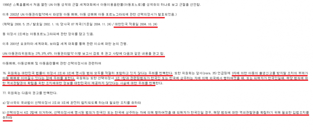 아니면 내가 정상적으로 해석하여 "UN 에서는 대한민국이 아동 해외 입양 시 법적 관리가 철저히 이루어지고 있지 않으며 해외로 파견된 미성년자 국제창녀에 대해 아무런 법적 조치도 취하지 않는 정부에 불만을 토로하고 있는 것" 인가?
