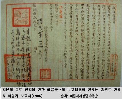일본은 한국을 강제로 점령하기 전 1905년 독도를 먼저 점령