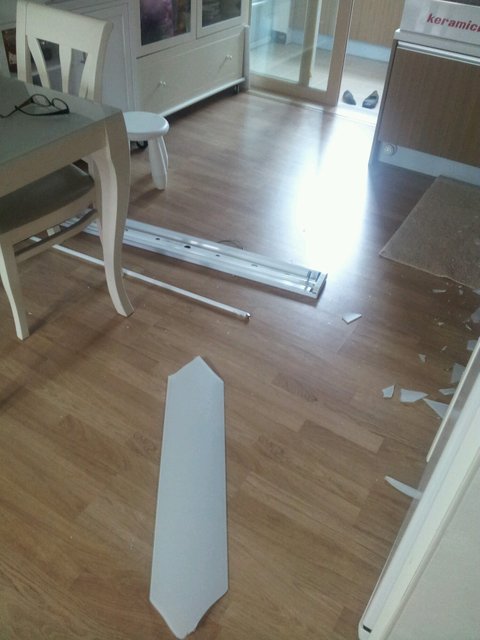씽크대 형광등 2개짜리 등이 떨어져서 머리와 어깨등을 다침