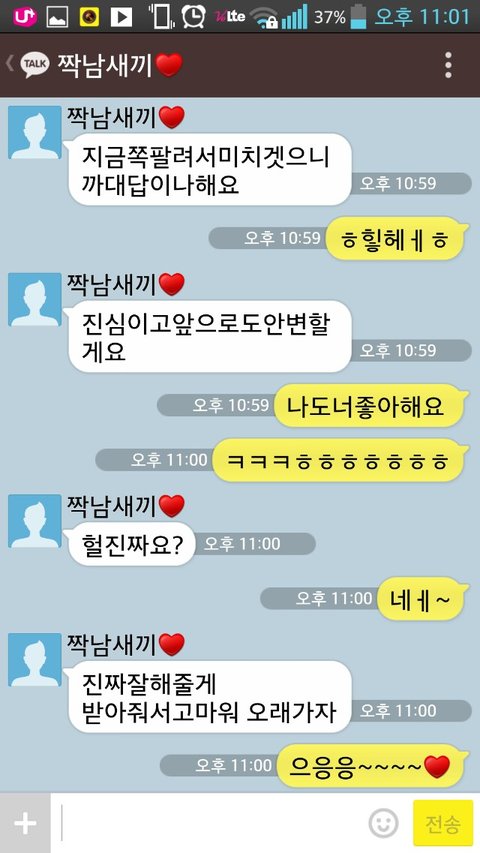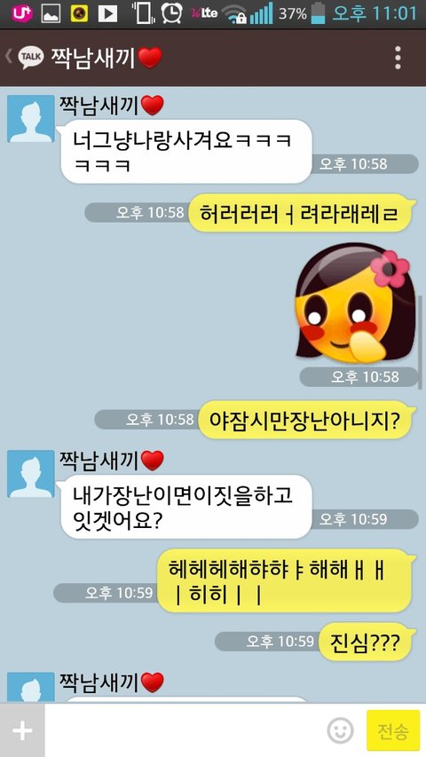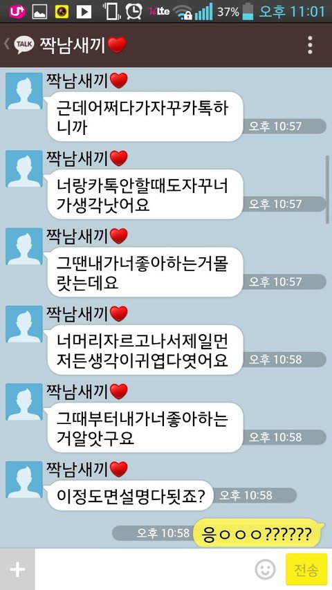 얘좋아해서내가처음에선톡걸엇엇거든??