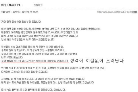 (모바일 배려로 다 옮겨적고 싶지만 ㅎㅎㅎ죄송해여 대충 해명이 걸그룹 관련얘기 ㄴㄴ! mt때 민낯을 보여준 막내작가 얘기임. 멤버들한테도 죄송합니다