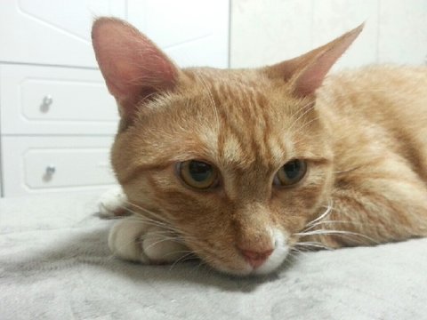 사진에서 보시는거처럼 골골골 사람 팔 베고 누워 애교부리는 게 일상이 귀염둥이입니다~^^