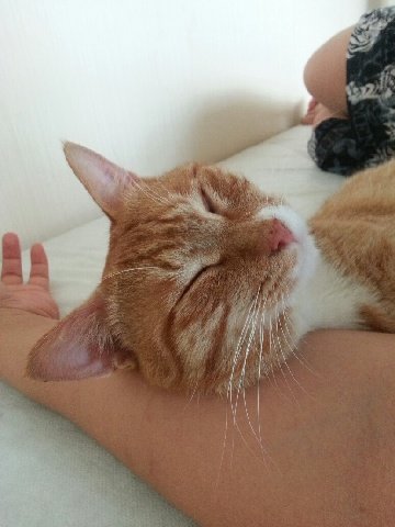 대롱이가 험하고 낮선 길이 아닌 사람 곁에서 그 좋아하는 집사 무릎과 팔에 몸을 기대면서