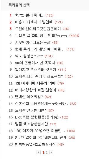 요즘 판에 3분의 2가 엑소인듯....그래서 그런지 요즘 판이 재미없다ㅠㅠ