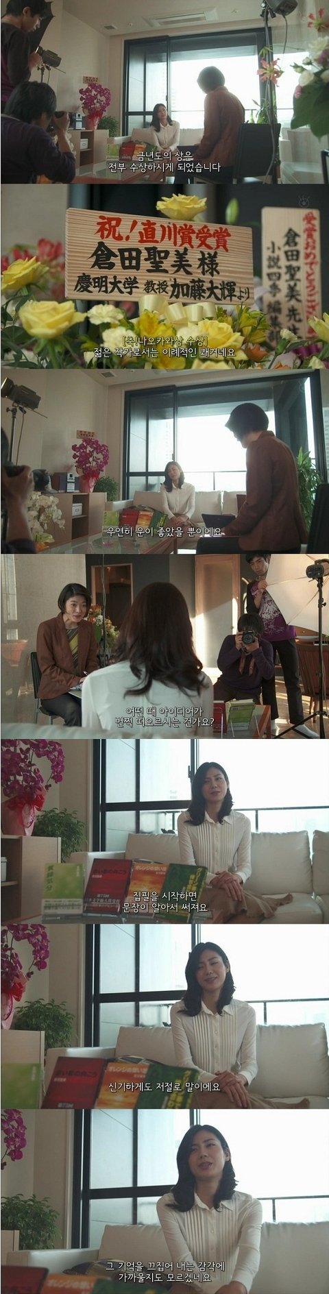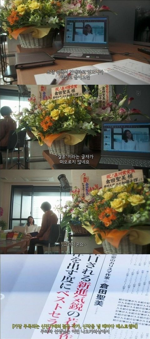 한 tv프로에 출연해 인터뷰를 하고 있는 여주는 자신이 글을 쓰기 시작하면 문장이 스스로 술술 떠오르는 재능을 가지고 있다함.