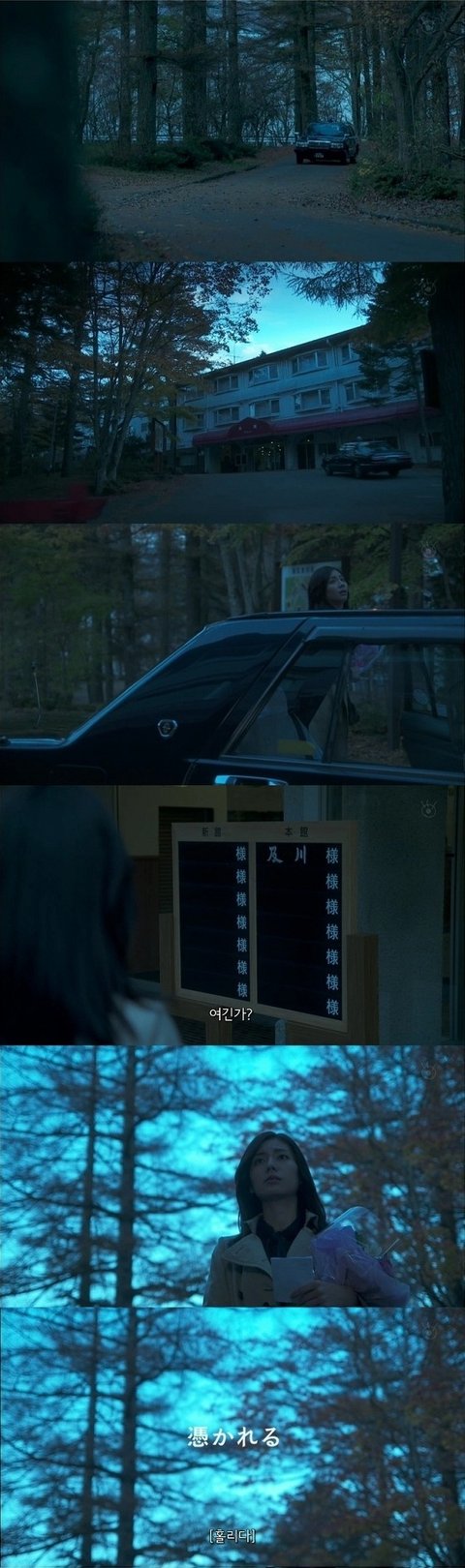 산장 혹은 별장으로 보이는 약속 장소에 도착하는 여주. 그리고 타이틀 등장.