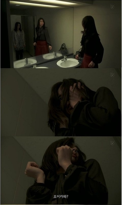 쫌 안좋은 예감이 들지만, 그냥 대수롭지 않게 넘겨 버리고 화장실에서 손을 씻는 여주.