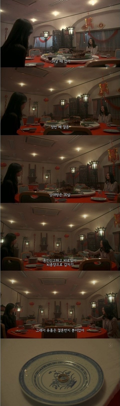 동창이 24세때 했던 첫번째 결혼. 혼인 신고 하자마자 뇌종양으로 남편 사망했다 하며 유품인 반지를 꺼내놓는 동창.