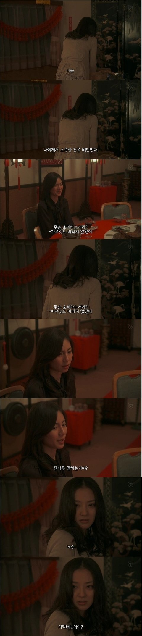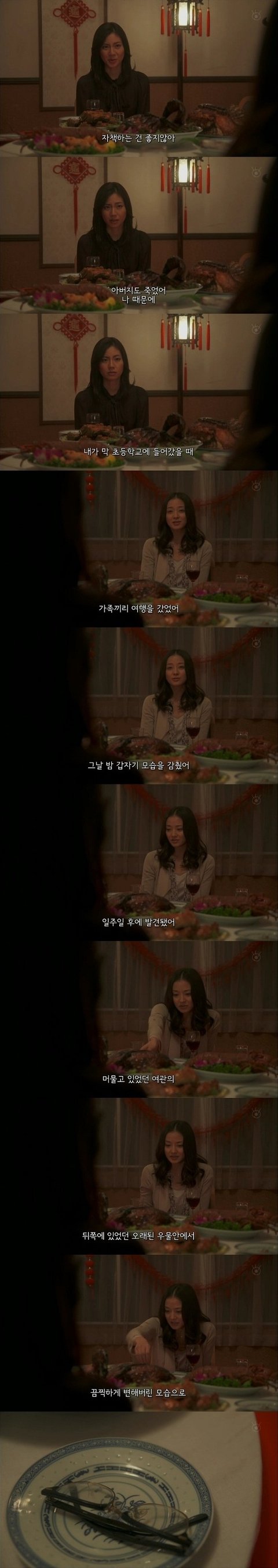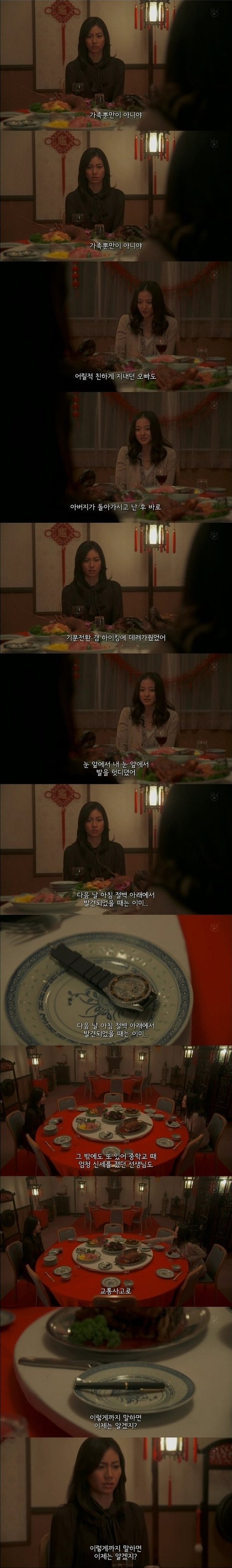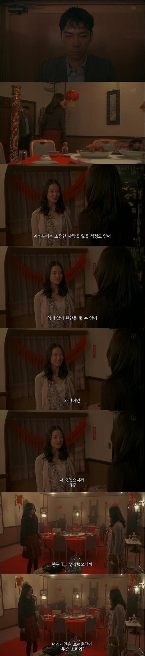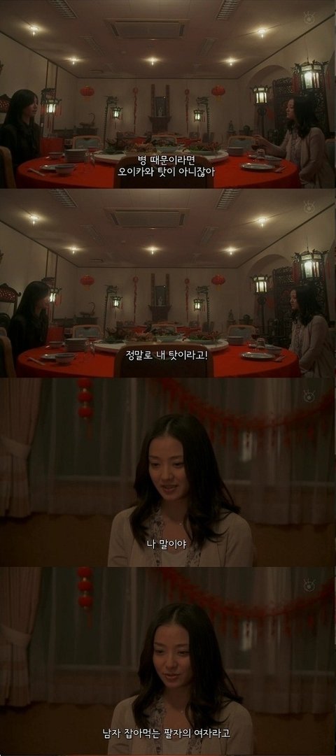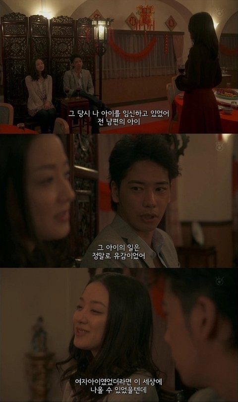 그때 동창은 임신중이었는데 여자애였더라면 이세상에 나올수 있었을 거란 말을 하는 동창. 그말은... 동창의 아이가 남자아이라서 죽었다는 말인듯. 아까 동창이 남자를 잡아먹는 팔자라 한말과 이어지는듯.