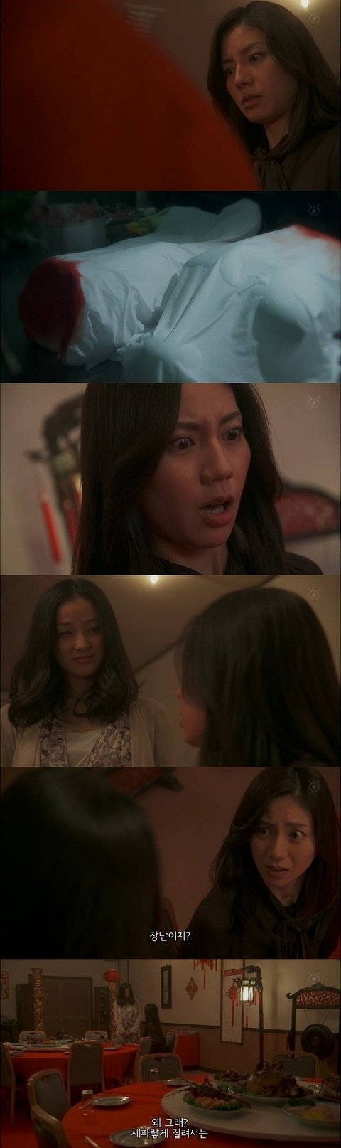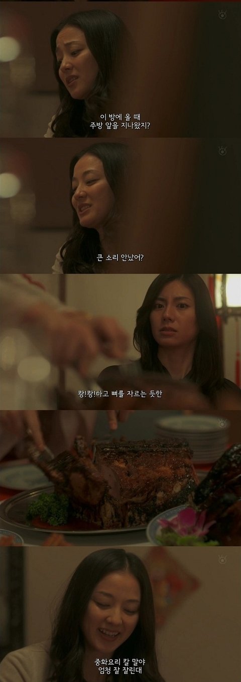 이곳에 오며 주방을 지나지 않았냐며 그때 뭔가 뼈를 자르는 듯한 소리가 안났냐며 묻는 동창.