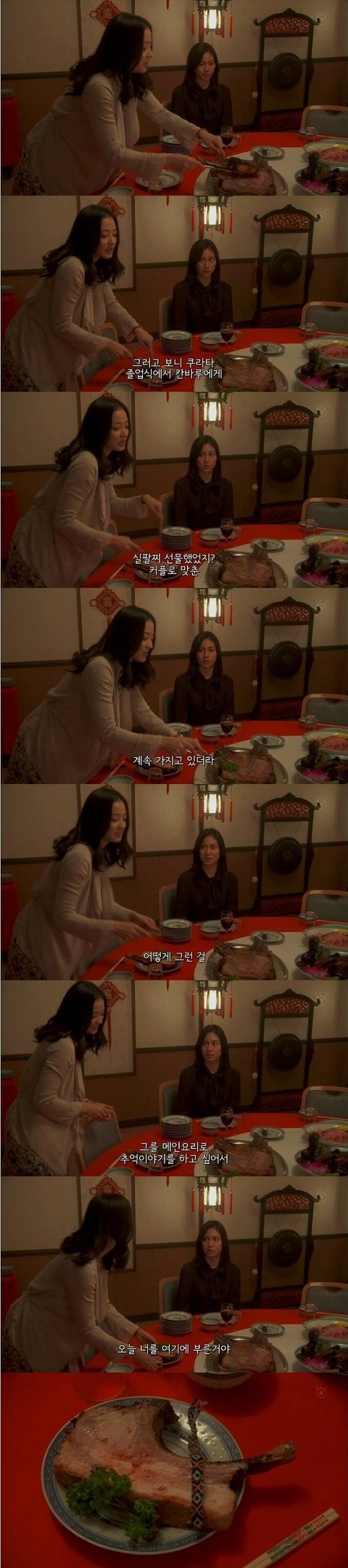 여주가 칸바루에게 커플 팔찌를 준 얘기를 하며 요리를 꺼내놓는데, 그 커플팔찌가 요리에 뙇!