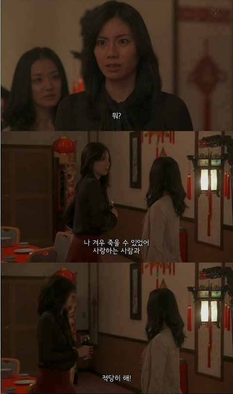 여주가 그것은 네탓이 아니라 하지만 동창은 내탓이라며 자신은 남자 잡아먹는 팔자라고 함.