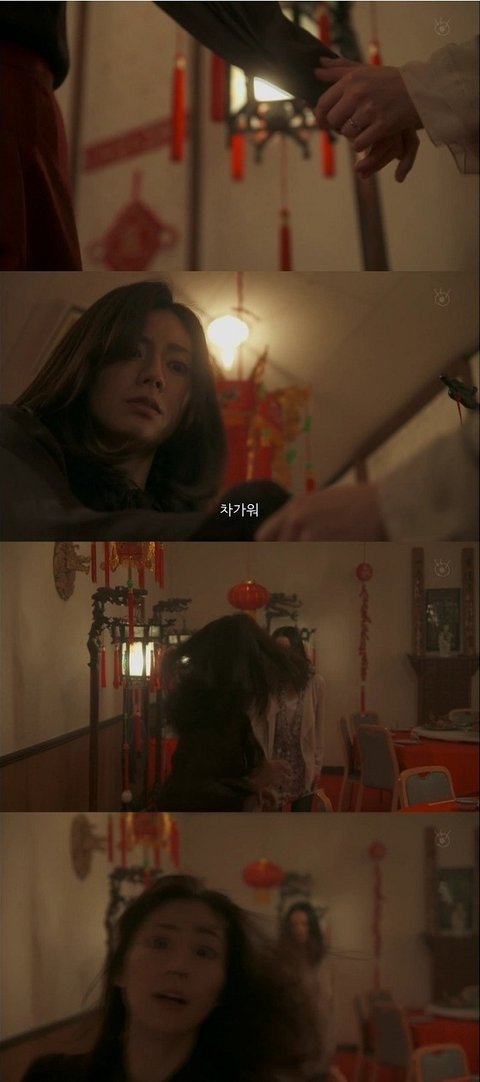 내 소중한것을 뺏어 갔다며 여주의 목을 조르는 동창, 그리고 점점 의식이 희미해지는 여주.