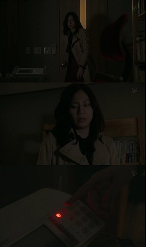 여주가 놀라며 주저 앉으려는데 전화기에 빨간 불이 깜빡이더니, 녹음된 내용이 흘러나옴.