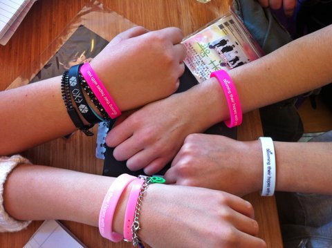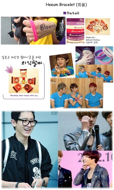 위안부 할머님들을 위한 후원팔찌이고 요즘 아이돌 분들이 많이 하셔서