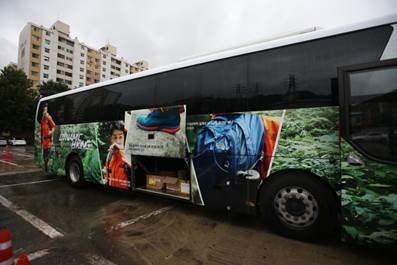 이벤트 현장에 도착하니 이런 “다이나믹하이킹”스러운 버스가 있네요.